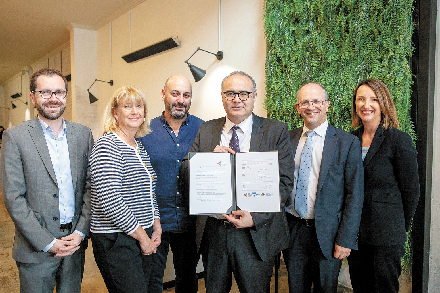 Glen Eira Mayor Cr Jamie Hyams and Council CEO Rebecca McKenzie were joined by Minister Somyurek; Member for Bentleigh Nick Staikos MP; and Small Business Victoria Commissioner Judy O’Connell at Fifth Chapter Café in Bentleigh for the official signing of the initiative, which will cut red tape and help businesses to thrive.