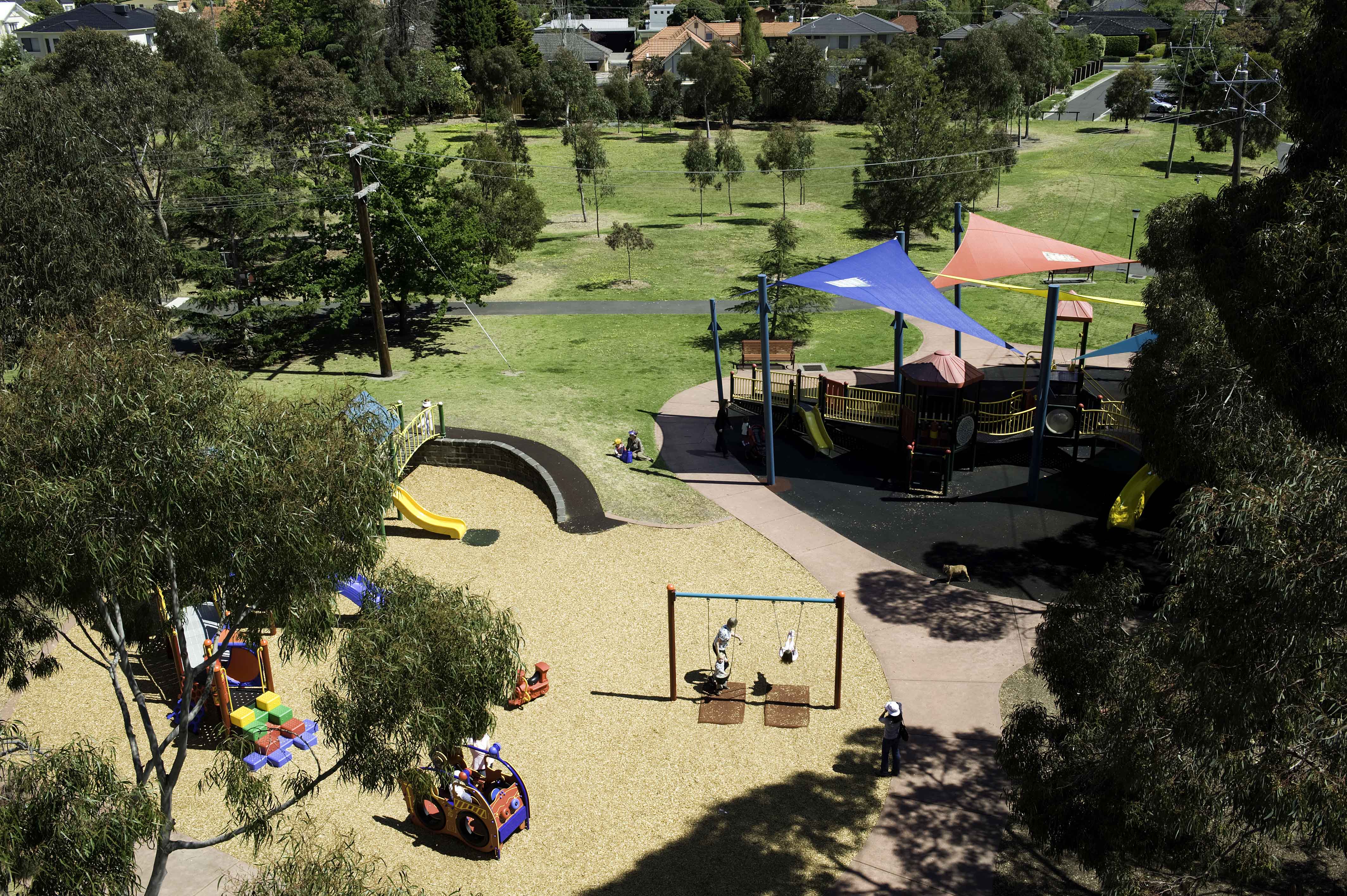 Allnutt Park is popular for its playground, parts of which are naturally shaded by the beautiful trees, whilst other areas are under shade sails for some protection from the elements. The large playground has a range of activities including: